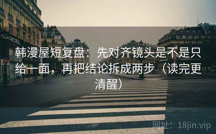 通过先对齐镜头是不是只给一面,再把结论拆成两步,我们可以在阅读韩漫时更好地理解和分析作品。这不仅有助于我们更深入地体会作者的叙事技巧和情感表达,还能够提高我们的阅读体验和理解能力。希望这篇文章能够为你带来新的启发,让你在韩漫阅读中获得更多的乐趣和收获。